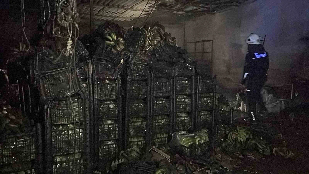 Alevler nedeniyle depolarda bulunan tonlarca muz zarar gördü. İhbar üzerine olay yerine itfaiye, jandarma ve olay yeri inceleme ekipleri sevk edildi.