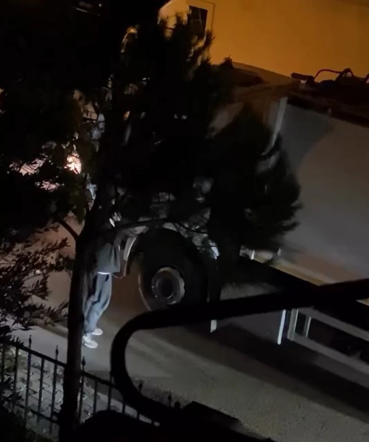 Küfürler savurarak tehditlerde bulunan saldırganın o anları çevredeki vatandaşlar tarafından cep telefonu kamerasıyla görüntülendi. Görüntülerde saldırganın küfür ederek "Beni araştır" dediği ve levyeyle şoföre vurduğu görüldü.