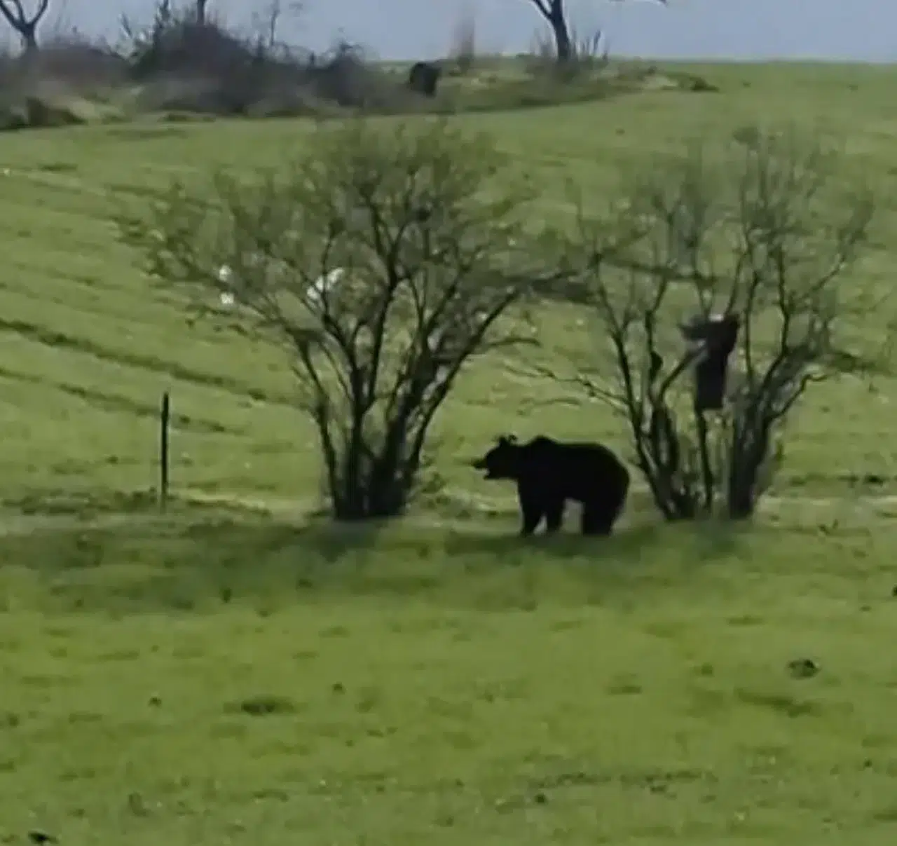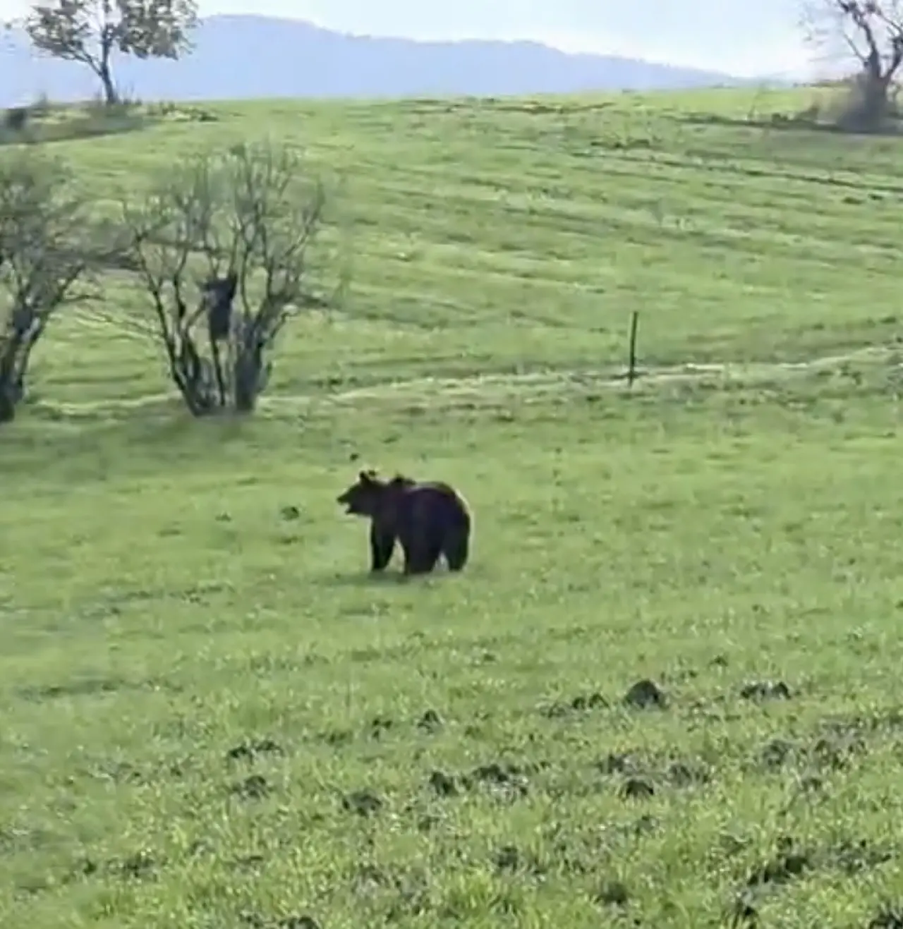 Efe, o anları telefon kamerasıyla kayıt altına aldı. Ayı, yoldan geçen diğer araçlardan ürkerek kırsal alana doğru kaçarak gözden kayboldu.