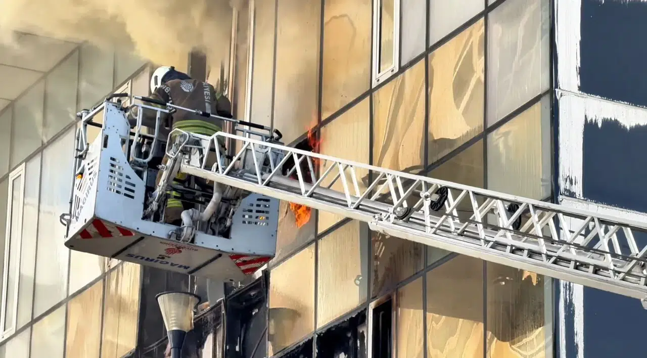 İhbar üzerine itfaiye ve polis ekipleri sevk edildi. Alevler yükselirken bazı alanlar dumanla kaplandı. İtfaiye camları kırarak müdahale etti ve yangın söndürüldü. Söndürme çalışmaları havadan görüntülendi.