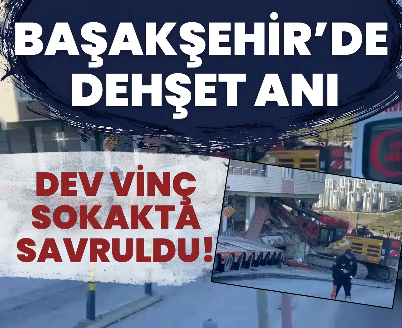 İstanbul Başakşehir’de seyir halindeki bir tırın arkasında taşınan vinç, henüz belirlenemeyen bir nedenle yerinden koparak kontrolden çıktı. Sokak ortasında savrulan dev vinç, iki araca ve bir binaya çarparak ancak durabildi. Olay, çevrede büyük paniğe yol açtı.