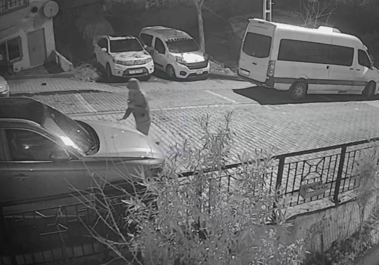 İstanbul Başakşehir’de gece saatlerinde kimliği belirsiz, yüzü kapalı bir kişi park halindeki otomobile levye ile saldırdı.