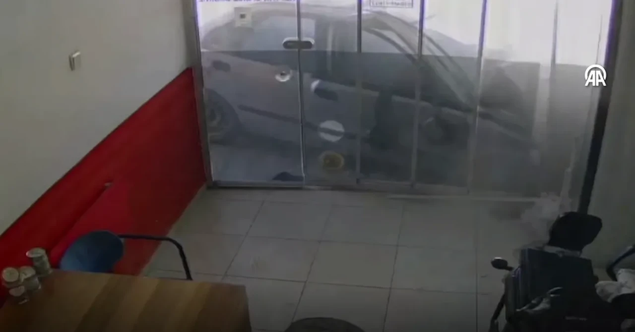 Bursa’da Otomobilin İş Yerinin Duvarına Çarpması Kamerada