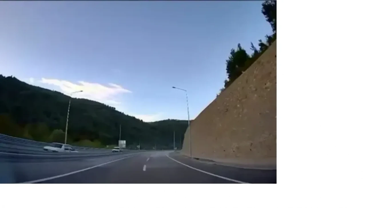 Olay, Bursa-Orhaneli yolu üzerinde meydana geldi. Bir otomobilin güvenlik kamerasına yansıyan görüntüde, herkesin yüreği ağzına geldi. Tofaş marka Şahin model otomobiliyle Bursa merkezine doğru ilerleyen sürücü, Doğancı Tünelini sorunsuzca geçti. Tünel çıkışı sağdan gitmesi gerekirken, sola doğru yöneldi. Arkasından gelen arabanın ikazına rağmen sola giren otomobil sürücüsü, karşıdan gelen araçlarla da çarpışmadan yoluna devam etti.