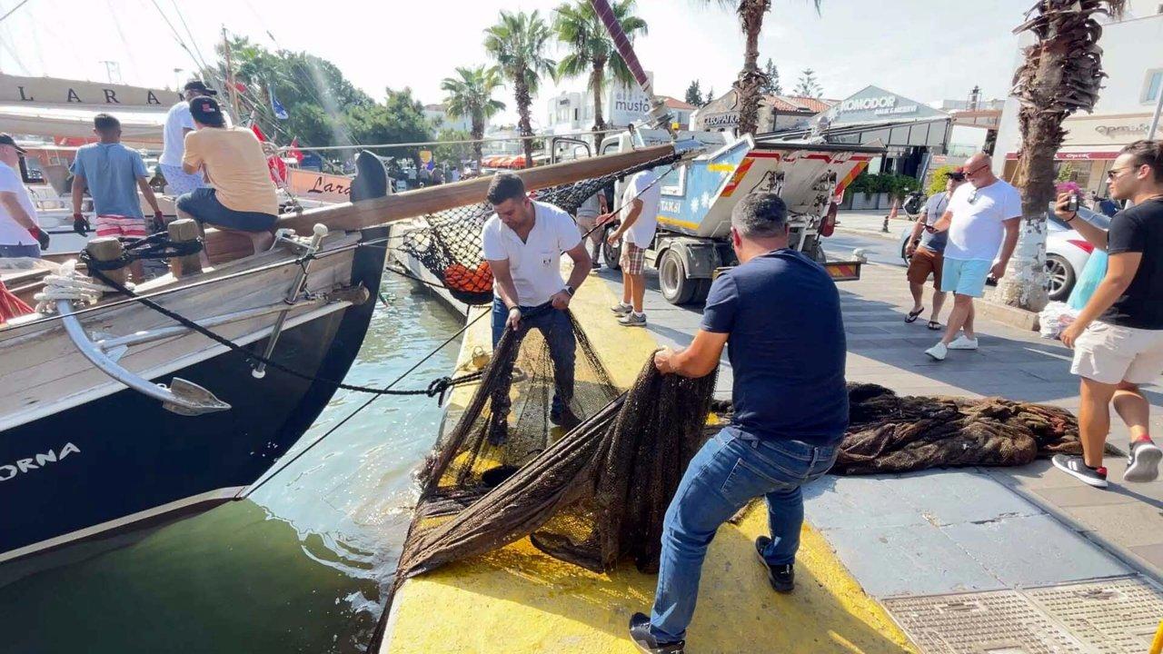 Muğla'nın Bodrum ilçesinde "Aksona Mehmet" olarak tanınan bölgenin son süngercisi olduğu belirtilen Mehmet Baş (74) ile ekibi, deniz dibinden 500 metrekare büyüklüğünde hayalet ağ çıkardı.