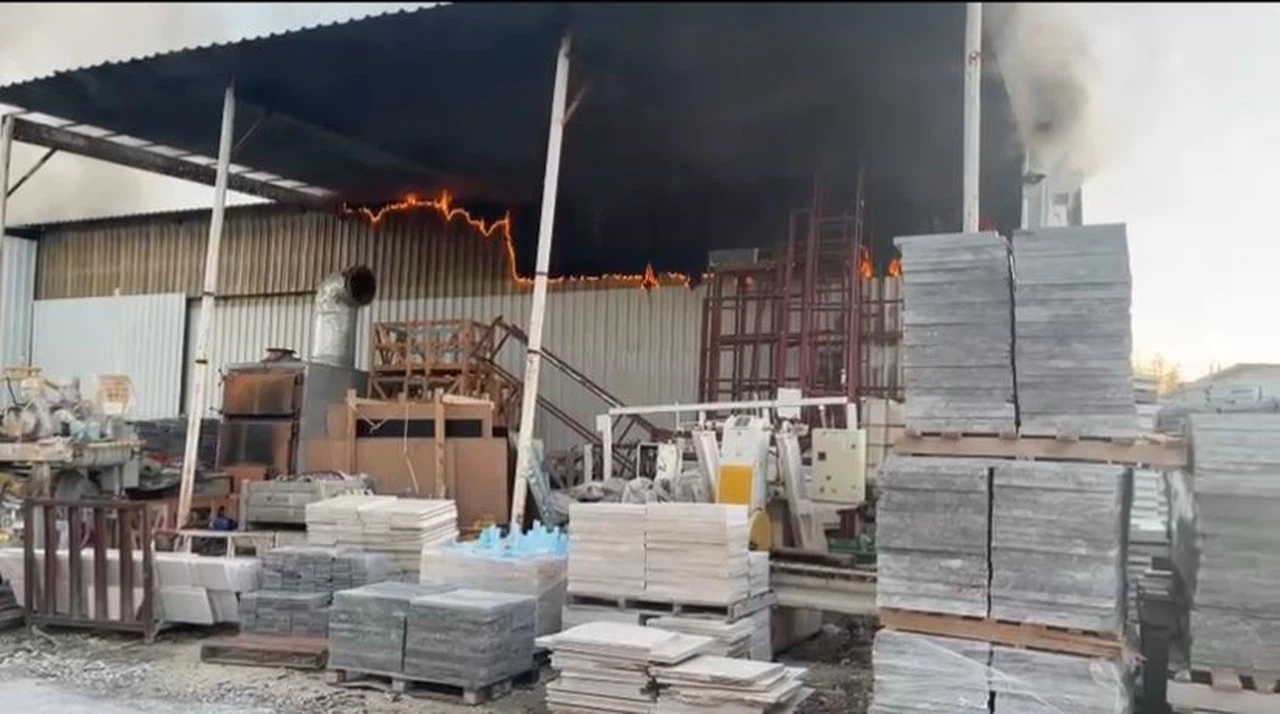 Edinilen bilgiye göre, mermer fabrikasının çatısında henüz bilinmeyen bir nedenden yangın çıktı.