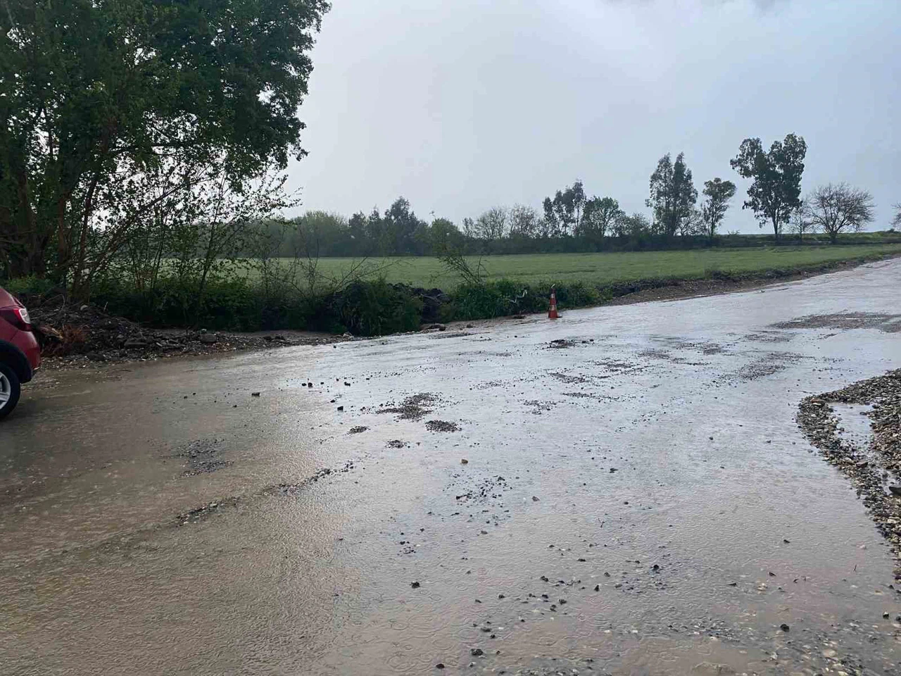 Akşam saatlerinde başlayan sağanak nedeniyle ilçedeki derelerin debisi yükselirken, bazı yollar ile tarım arazileri sular altında kaldı.