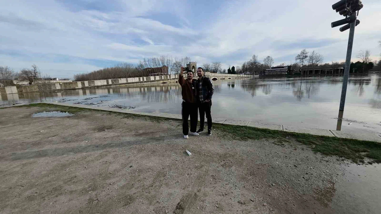 Meriç Nehri’nde taşkın riski bulunurken, sosyal medya ve televizyonlardan bunu öğrenen birçok vatandaş çocukları ile beraber nehir kenarına geldi.