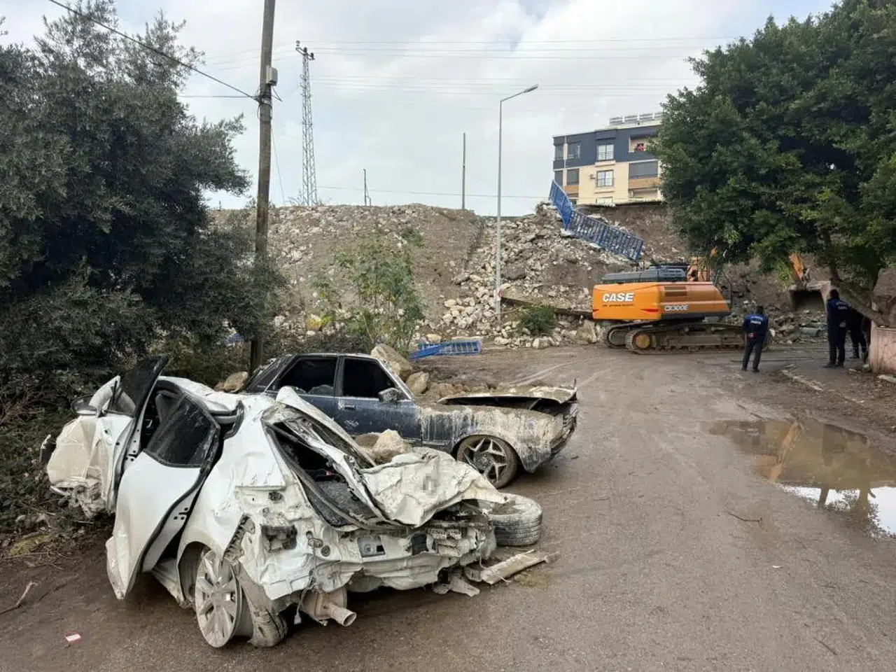 Hatay Büyükşehir Belediyesi’ne ait iş makineleriyle gece boyunca yürütülen çalışmaların ardından enkaz altındaki araçlar kurtarıldı. Havanın aydınlanmasıyla felaketin boyutu ortaya çıkarken, enkazdan çıkarılan 7 aracın hurdaya döndüğü görüldü. Olayda yaralanma veya can kaybı yaşanmadı.