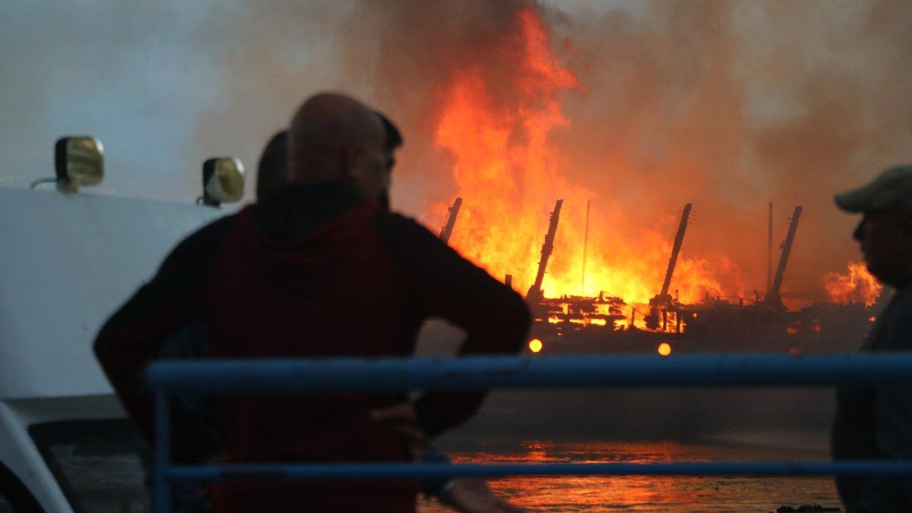 Teknelerde soğutma çalışması sürerken, yangının çıkış nedenini belirlenmesi için inceleme başlatıldı.