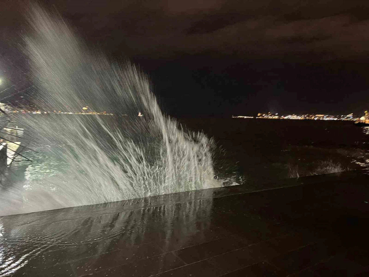 Şiddetli rüzgar sebebiyle kıyıya vuran yüksek dalgalar Beşiktaş sahilinde görüntülendi.