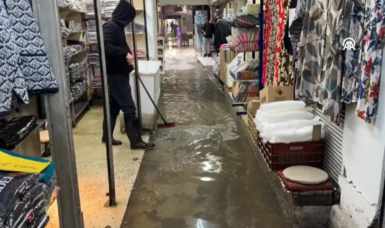 Yoğun yağış nedeniyle Kemeraltı Çarşısı’nda bazı yollar suyla kaplandı, iş yerlerinin önlerinde su birikintileri oluştu. Esnaf, oluşan suyu kendi çabalarıyla tahliye etmeye çalışırken, çarşıdaki hareketlilik yağmur nedeniyle azaldı.