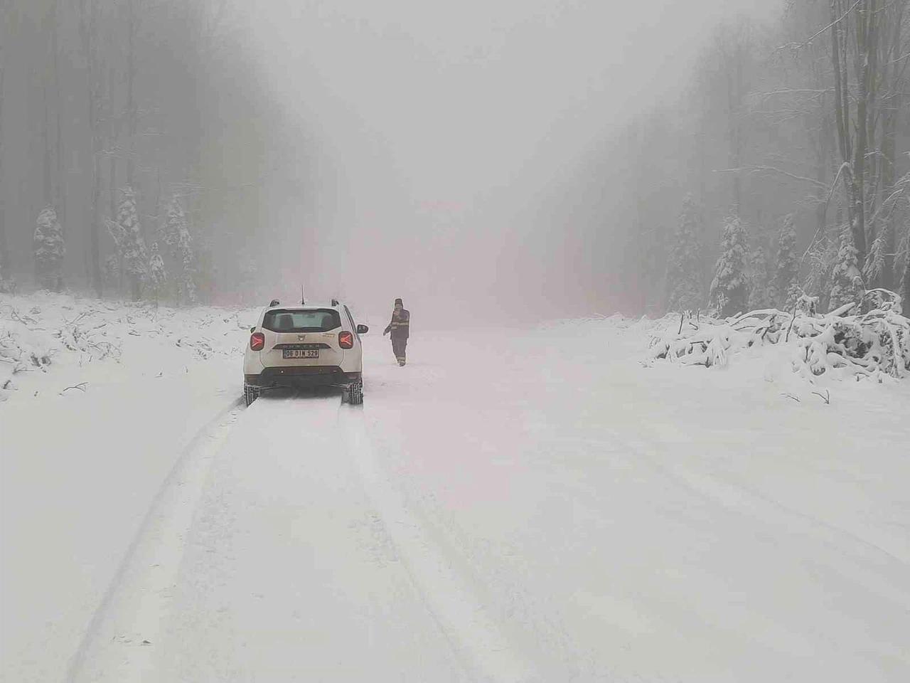 İnebolu'da etkili olan kar yağışı yüksek kesimleri beyaza bürüdü