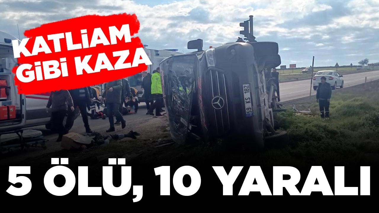 Tekirdağ'ın Saray ilçesinde TIR ile yolcu minibüsünün çarpıştığı kazada, ilk bilgilere göre 5 kişi öldü, 10 kişi yaralandı.