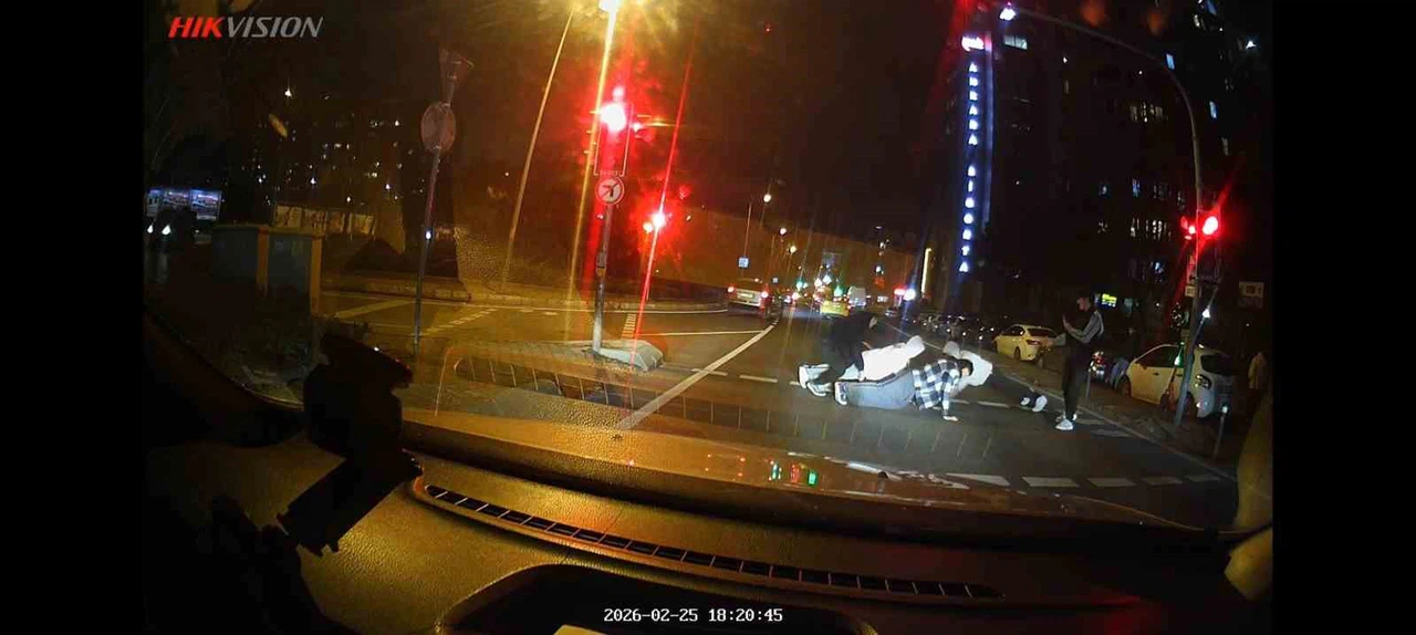 Trafik ışıklarında araçların durmasıyla birlikte yola çıkan bir grup genç, yaya geçidi üzerinde şınav çekmeye başladı. Gençlerin kırmızı ışık süresince gerçekleştirdiği bu aktivite, o sırada ışıkta bekleyen bir otomobilin araç kamerası tarafından kaydedildi.