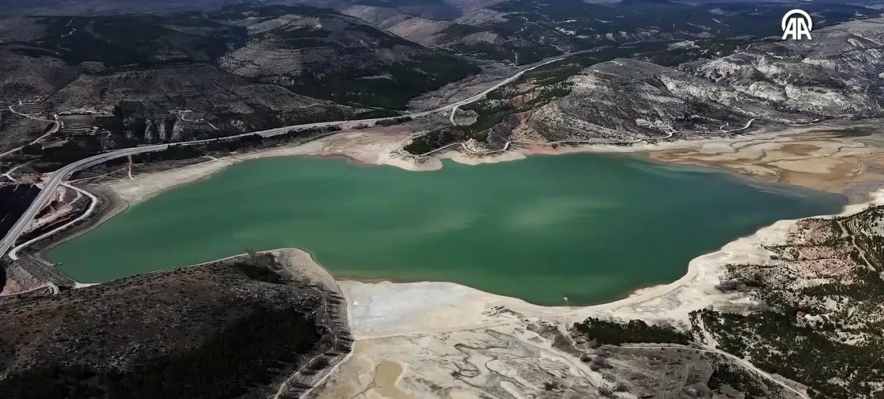 Barajı besleyen kanalların, kuraklık nedeniyle adeta akarsu görünümüne bürünmesi, su seviyesi düşüşünün boyutlarını gözler önüne serdi. Dronla havadan görüntülenen baraj çevresi ve su kanalları, vahim tabloyu çarpıcı biçimde ortaya koydu.