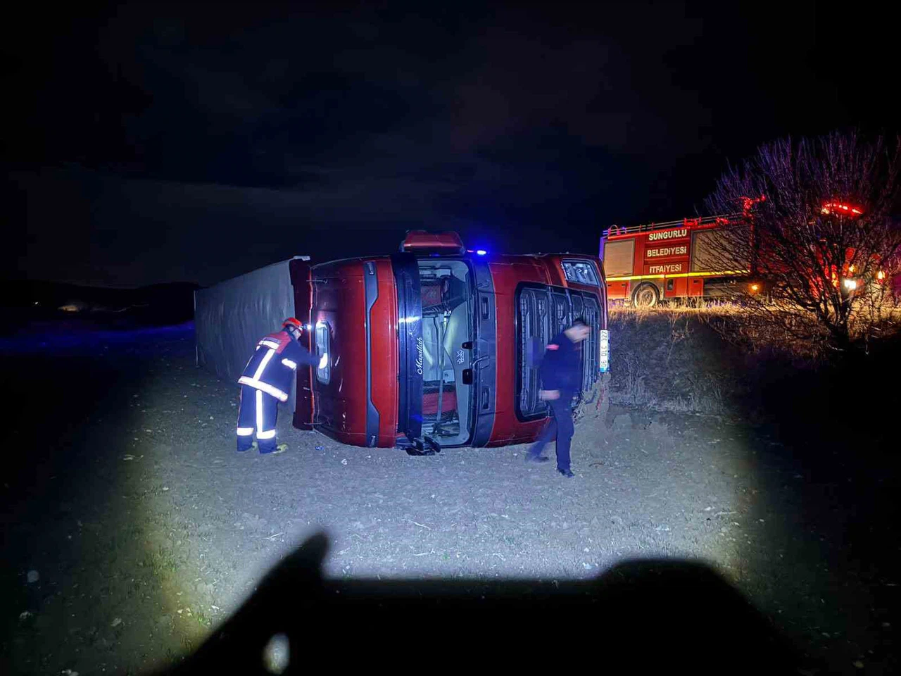 06 DLC 327 plakalı tır ile seyir halinde olan M.A., yola aniden çıkan köpeğe çarpmamak için manevra yaptı. Manevra sırasında sürücünün direksiyon hakimiyetini kaybetmesi neticesinde yoldan çıkan tır devrildi.
