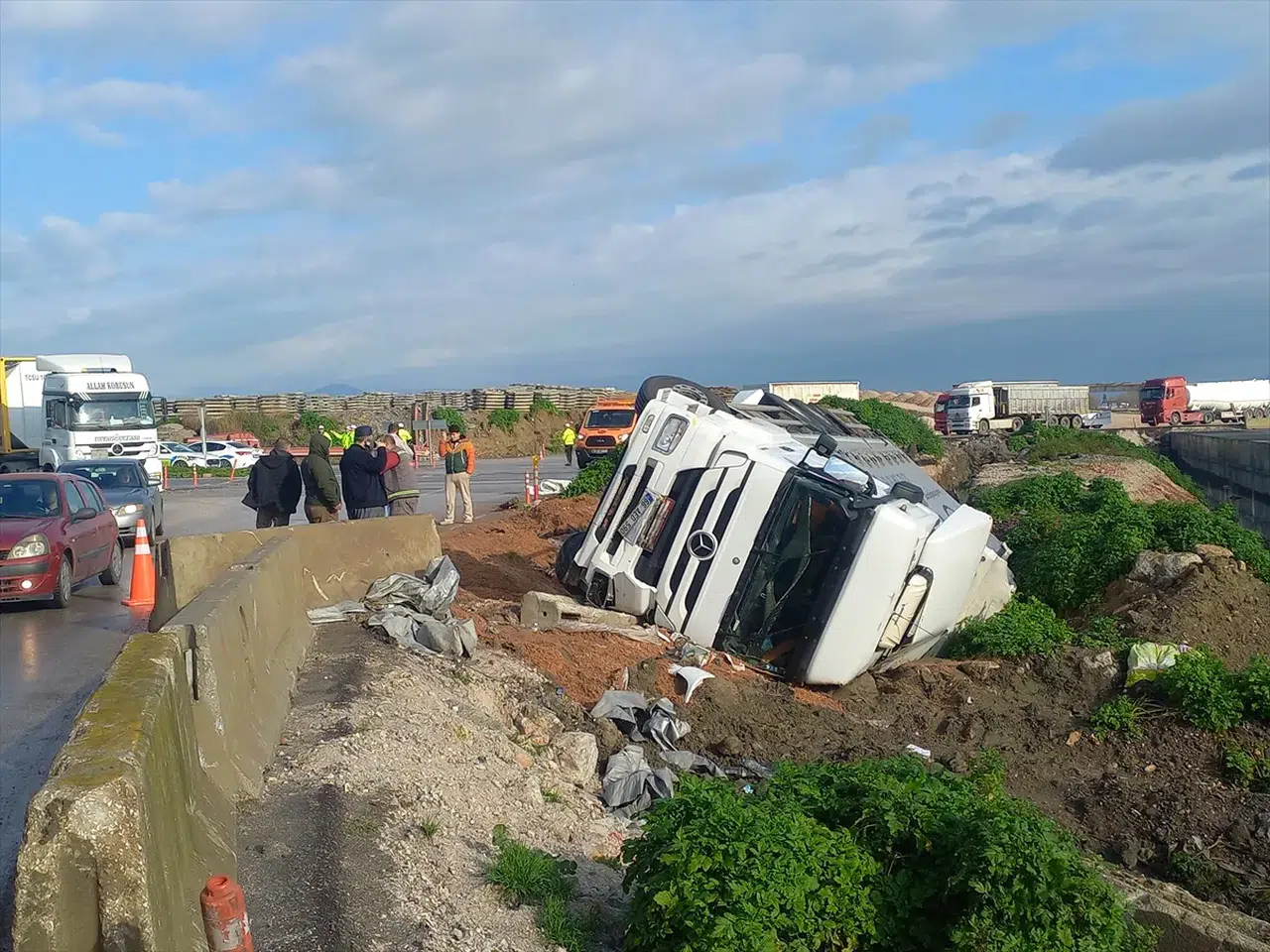 E.K'nin kullandığı 66 AED 590 plakalı palet yüklü kamyon, Manisa-Akhisar yolunun Gediz Kavşağı geçişinde kontrolden çıkarak şarampole devrildi. İhbar üzerine bölgeye sağlık, polis ve itfaiye ekipleri sevk edildi.
