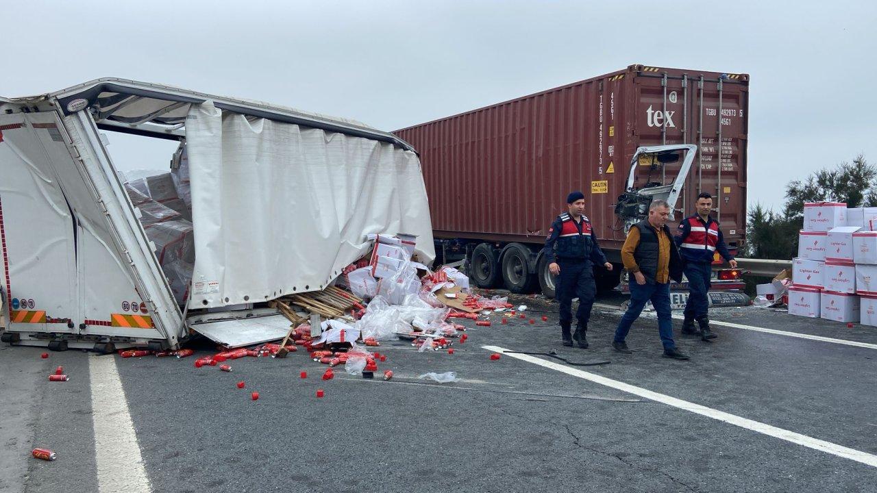 TEM Otoyolu Selimpaşa mevkii'nde TIR ile kamyonun çarpışması sonucu yol trafiğe kapandı.