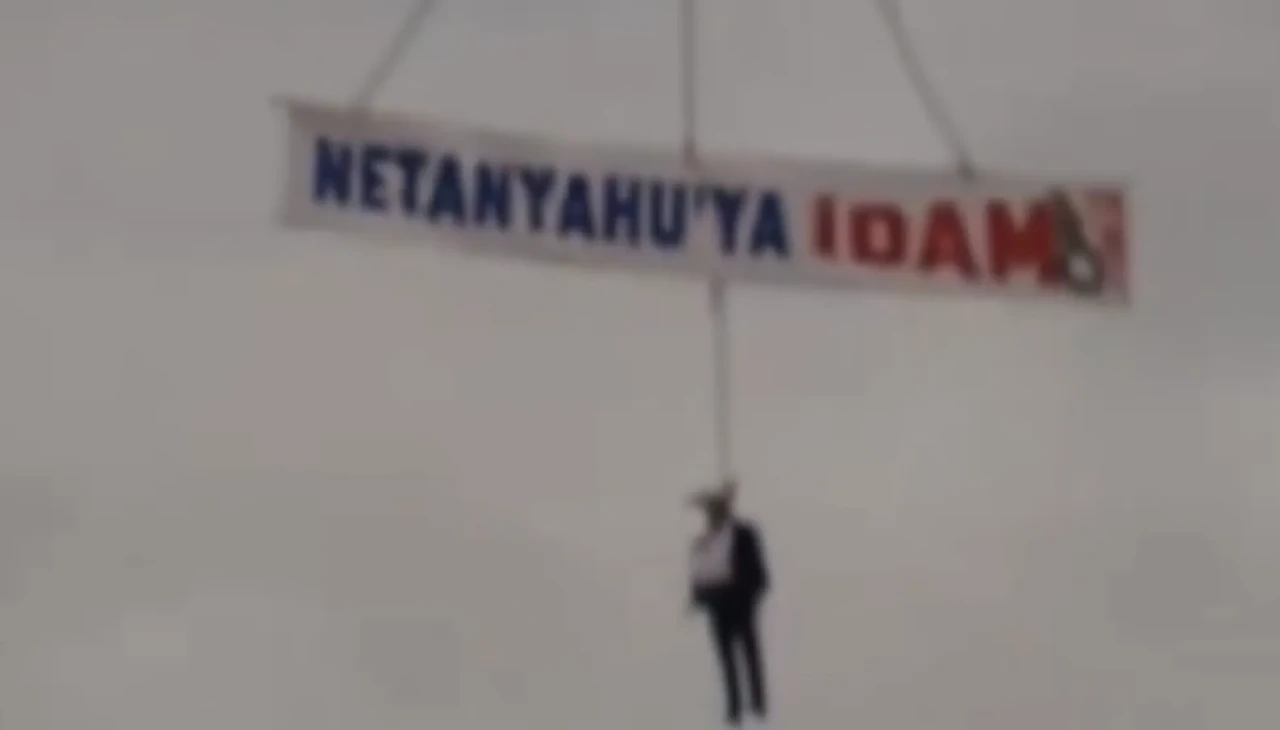 Trabzon’da Gazze saldırılarını protesto eden bir eylemde, İsrail Başbakanı Netanyahu’nun maketi başına çuval geçirilerek vinçle temsili şekilde asıldı. Eylemi organize eden Dr. Kemal Sağlam, protestonun Gazze’de yaşanan sivil ölümlerine dikkat çekmek amacı taşıdığını belirtti. "Savaş suçlusu" yazılı maketli gösteri, İsrail’in Gazze politikasına karşı tepkilerin simgesi haline geldi.
