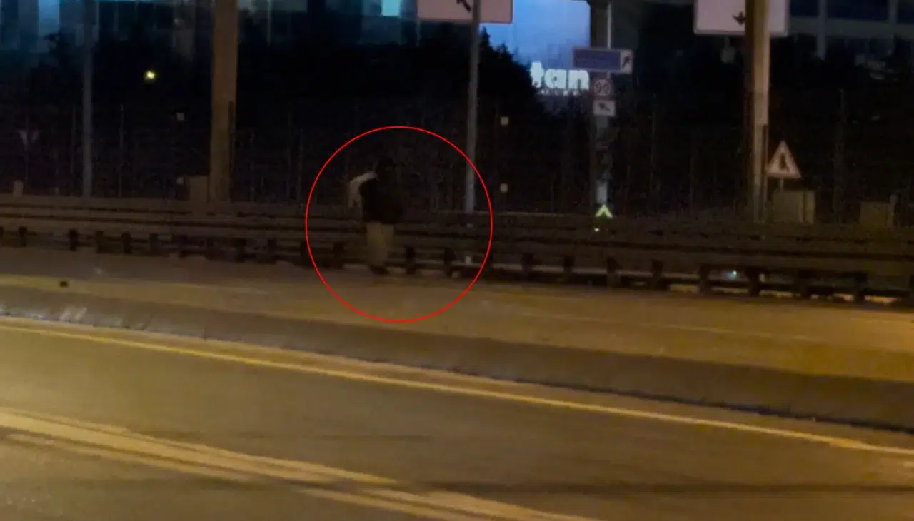 Olay, gece saatlerinde Beylikdüzü ilçesinde yaşandı. İddiaya göre, Beylikdüzü’nden E-5 ana yola çıkan bir şahıs henüz bilinmeyen bir nedenle Avcılar’a kadar kilometrelerce yürüdü. E-5 üzerinde yürüyen adamı fark eden sürücüler ise çarpmamak için frene bastı. Trafiği tehlikeye atan şahsın neden ana yolda yürüdüğü bilinmezken yaşanan o anlar çevredekiler tarafından cep telefonuyla görüntülendi. Kilometrelerce yol yürüyen şahıs, kazaya neden olmadan bir süre sonra gözden kayboldu.