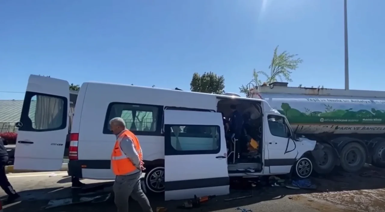 Antalya Serik’te Tur Minibüsü Sulama Tankerine Çarptı
