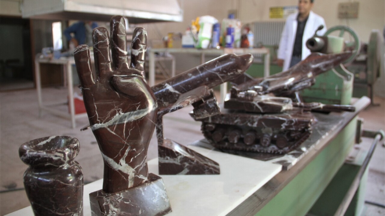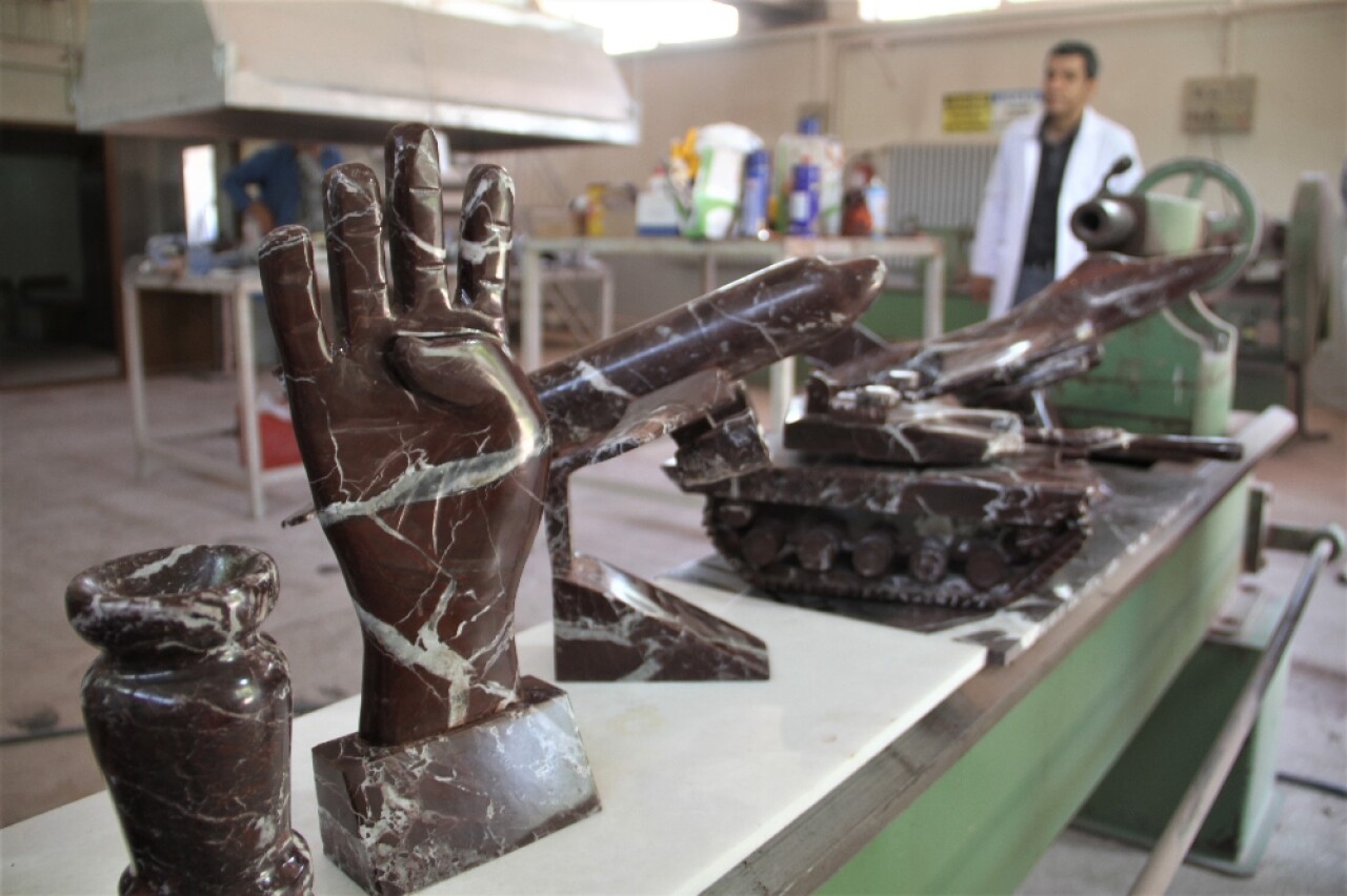Dünyada sadece Elazığ'da çıkan vişne çürüğü mermerlerin atıkları da artık sanata dönüşüyor.