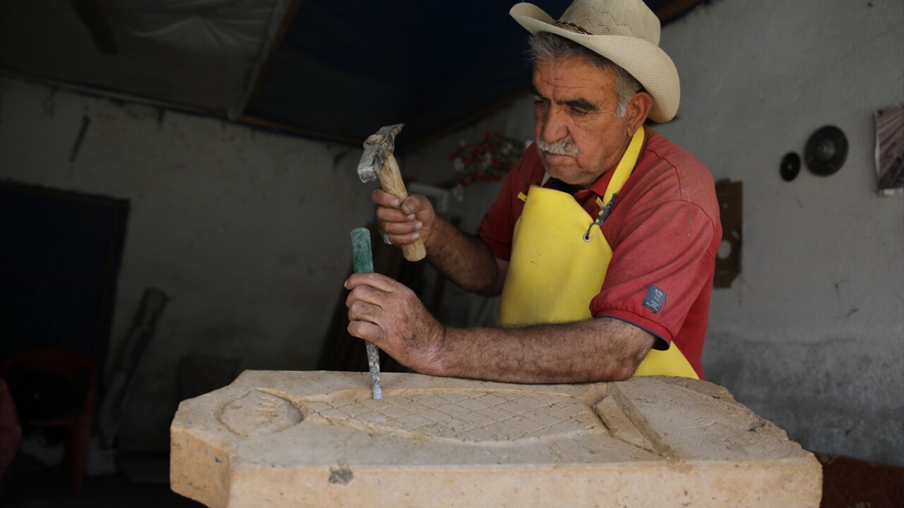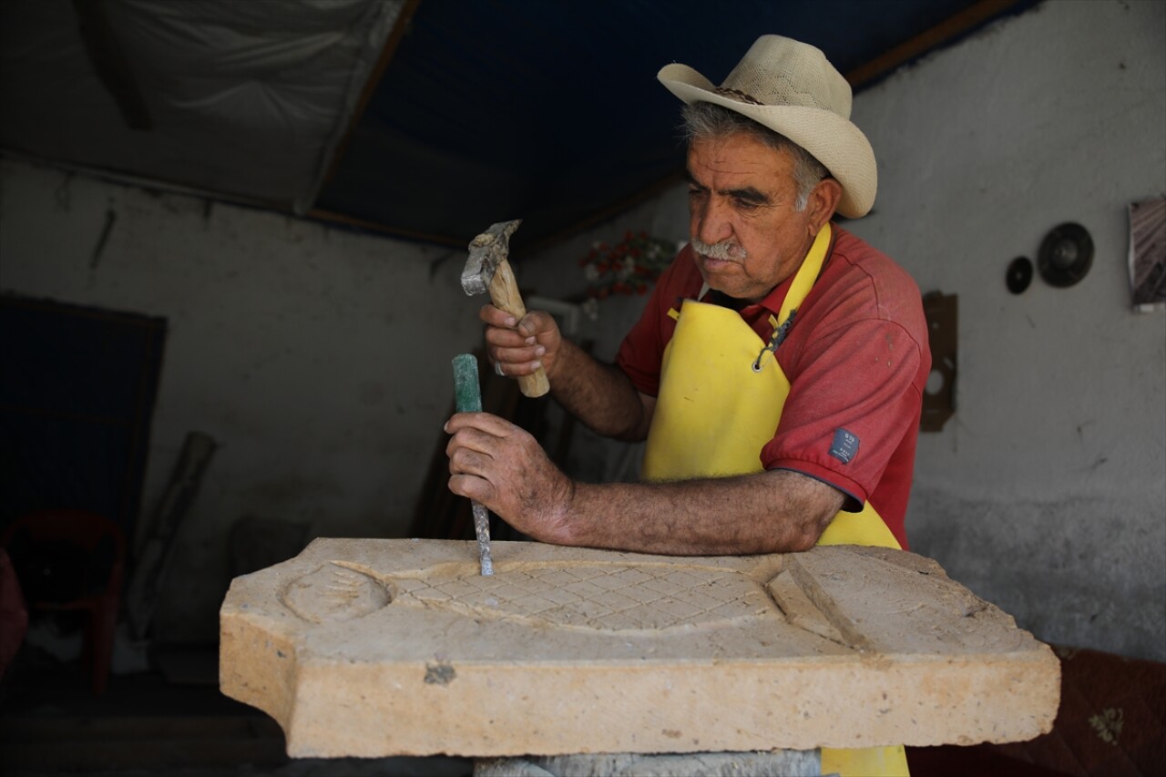 Yukarı Işıklı Mahallesi'nde yaşayan 7 çocuk babası Kılıç, küçük yaştan itibaren merak ettiği taş oymacılığını icra ediyor.