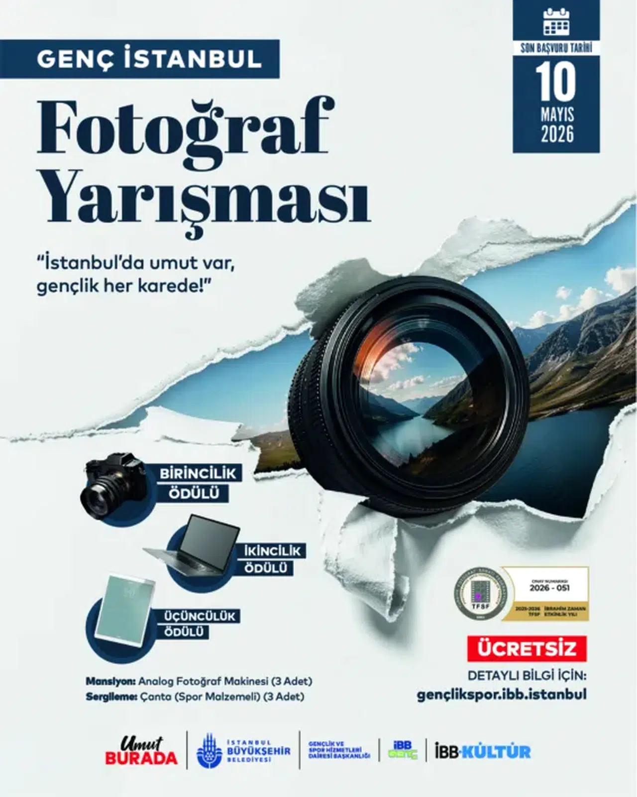 İstanbul Büyükşehir Belediyesi (İBB), Milli Mücadele’nin meşalesinin yakıldığı 19 Mayıs Atatürk’ü Anma, Gençlik ve Spor Bayramı’nı bu yıl görsel bir şölenle kutluyor. İBB Gençlik ve Spor Hizmetleri Dairesi ile Yıldız Teknik Üniversitesi iş birliğinde düzenlenen “Genç İstanbul Ulusal Fotoğraf Yarışması” için geri sayım başladı. Şehrin enerjisini ve geleceğe dair umudu karesine sığdıran gençler, dijital fotoğraf makinesinden dizüstü bilgisayara kadar pek çok değerli ödülün sahibi olacak.