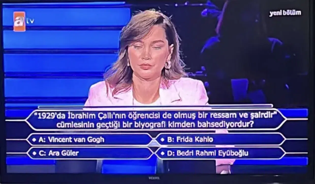 ATV ekranlarında Oktay Kaynarca’nın sunumuyla yayınlanan Kim Milyoner Olmak İster’de sanat tarihiyle ilgili dikkat çeken bir soru gündem oldu. Bir ressamın biyografisinde geçen çarpıcı ifadeye dayanan bu soru, yarışma sırasında izleyicileri ekrana kilitledi. Sanat ve kültür bilgisini ölçen soru, yayın sonrası sosyal medyada ve arama motorlarında yoğun şekilde araştırılmaya başladı.