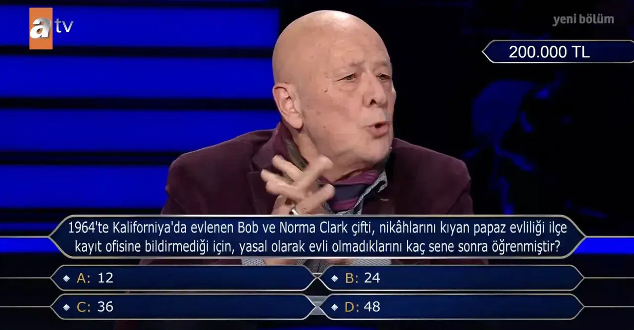 Bu ilginç olay, özellikle bilgi yarışmalarında sorulmasıyla birlikte yeniden merak konusu oldu. Çiftin bu gerçeği kaç yıl sonra öğrendiği sorusu ise seçenekler arasında dikkat çekiyor.