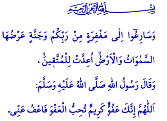 Okuduğum ayet-i kerimede Cenâb-ı Hak şöyle buyuruyor: "Rabbinizin mağfiretine ve genişliği göklerle yer kadar olan, Allah'a karşı gelmekten sakınanlar için hazırlanmış bulunan cennete koşun."Okuduğum hadis-i şerifte Peygamber Efendimiz (s.a.s) bizlere şu duayı öğretiyor: "Allah'ım! Sen affedicisin, Kerîm'sin, affetmeyi seversin, beni de affet."