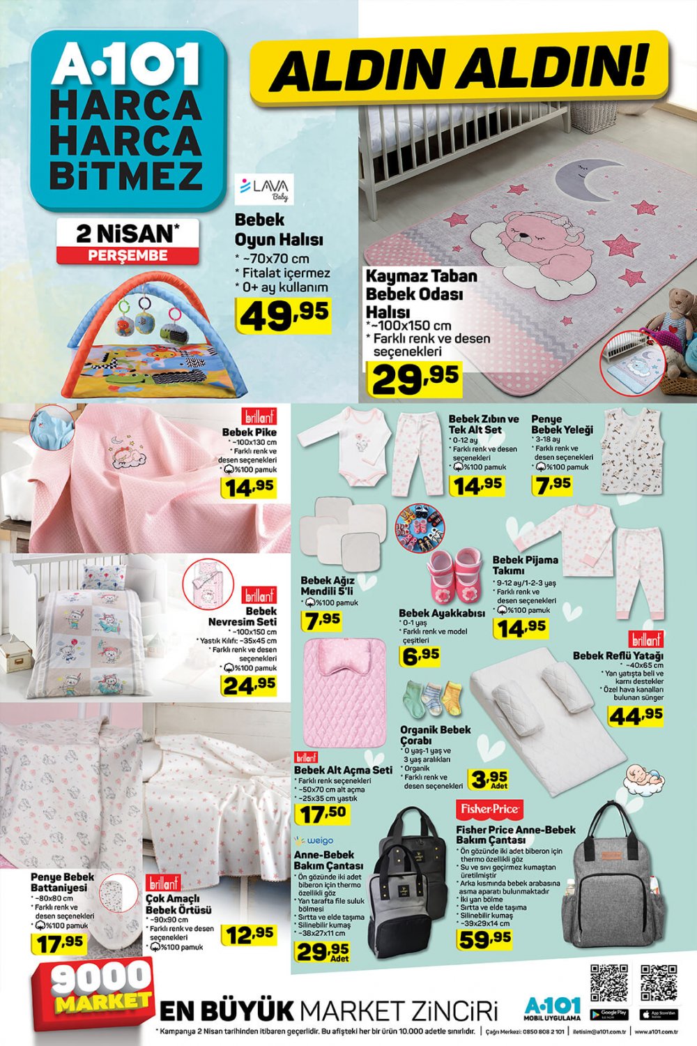 Türkiye'nin en çok tercih edilen süper marketler zincirleri arasında yer alan A101 2 Nisan indirimli ürünler katalogu ile müşterilerinin karşısına çıktı. Geniş ürün yelpazesinde sunduğu fırsatlarla alışveriş yapanların yüzünü güldüren firma yine dopdolu bir bülten yayınladı. Sınırlı sayıda çıkarılan ürünleri kaçırmamak için haberimize gözatabilirsiniz. A101 2 Nisan Perşembe Aktüel indirim katalogu haberimizde yer alıyor. Android işletim sistemli, 3x zoom yapabilen kameralı Honor 7S Cep Telefonu 799 TL, Dahili uydu alıcılı Elton 32″ Led TV 829 TL, Piranha Klavye Mouse Seti 29,95 TL, Piranha Tripod Telefon Tutucu 9,95 TL, Mercusys Kablosuz Ağ Genişletici 69,95 TL,SEG KM701 Kurutma Makinesi 1299 TL, Ön yıkama fonksiyonlu, 15 yıkama programlı, çocuk kilidi, yarım yük, hata algı sistemi ve 5 kg yıkama kapasitesi gibi özellikleri ile dikkat çeken SEG SCM 5800 Çamaşır Makinesi 999 TL, Fantom Cyclone Elektrikli Süpürge 309 TL, Nero Çift Taraflı Balık ve Gözleme Tavası 49,95 TL, Yuvarlak Kase 7,95 TL Erzak Kabı 4,95 TL, Eğitici Aktivite Masası 44,95 TL, Mama Sandalyesi 49,95 TL, Baston Puset 149,95 TL, Lisanslı Oyuncak Kutusu 22,50 TL, Oyuncak Kutuda Minnoş Bebek 19,95 TL, Tekerlekli Oyuncak Kutusu 49,95 TL, Oyuncak Aktivite Küpü 19,95 TL, Oyuncak Renkli Halkalar 9,95 TL, Bebek Alt Açma Seti 17,50 TL, Organik Bebek Çarşafı 3,95 TL, Bebek Ayakkabısı 6,95 TL, Bebek Pijama Takımı 14,95 TL, Brillant Bebek Pike 14,95 TL, Büyük Boy ABS Valiz 109,95 TL, Orta Boy ABS Valiz 99,95 TL, Küçük Boy ABS Valiz 89,95 TL.