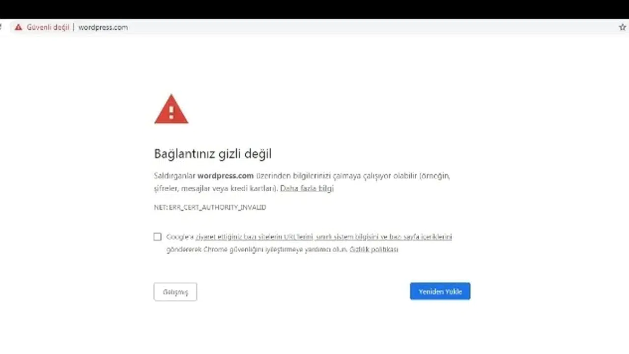 Bir web sitesini ziyaret etmek istediğinizde, tarayıcınız arka planda o sitenin dijital güvenlik sertifikalarını, yani SSL (Secure Sockets Layer) durumunu kontrol eder. Eğer tarayıcı, sitenin kimliğini doğrulayamazsa veya sunucu ile cihazınız arasındaki bağlantı şifrelenemezse bu uyarıyı verir. Temelde sistem size, "Bu siteye gönderdiğin şifreler, ödeme bilgileri veya kişisel veriler üçüncü şahıslar tarafından ele geçirilebilir" mesajını iletir. Dolayısıyla bu hata, aslında dijital gizliliğinizi koruyan bir kalkan görevi görür.