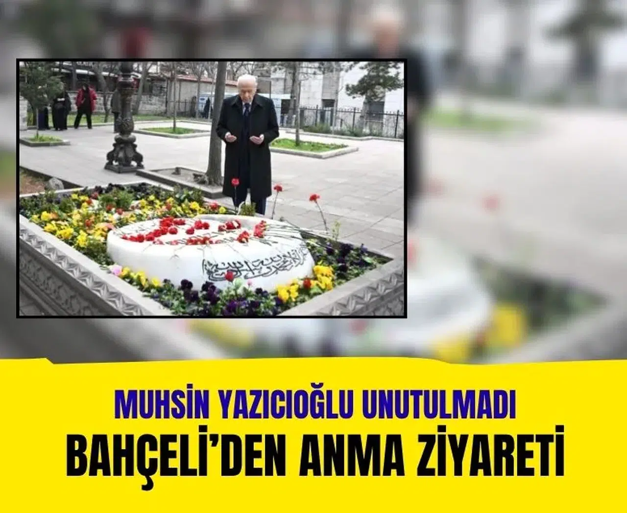 MHP lideri Devlet Bahçeli, 23 Mart 2026 günü Ankara’da bulunan kabristana giderek Muhsin Yazıcıoğlu’nun kabrini ziyaret etti. Ziyaret, Yazıcıoğlu’nun vefatının 17’nci yıl dönümüne denk geldi.