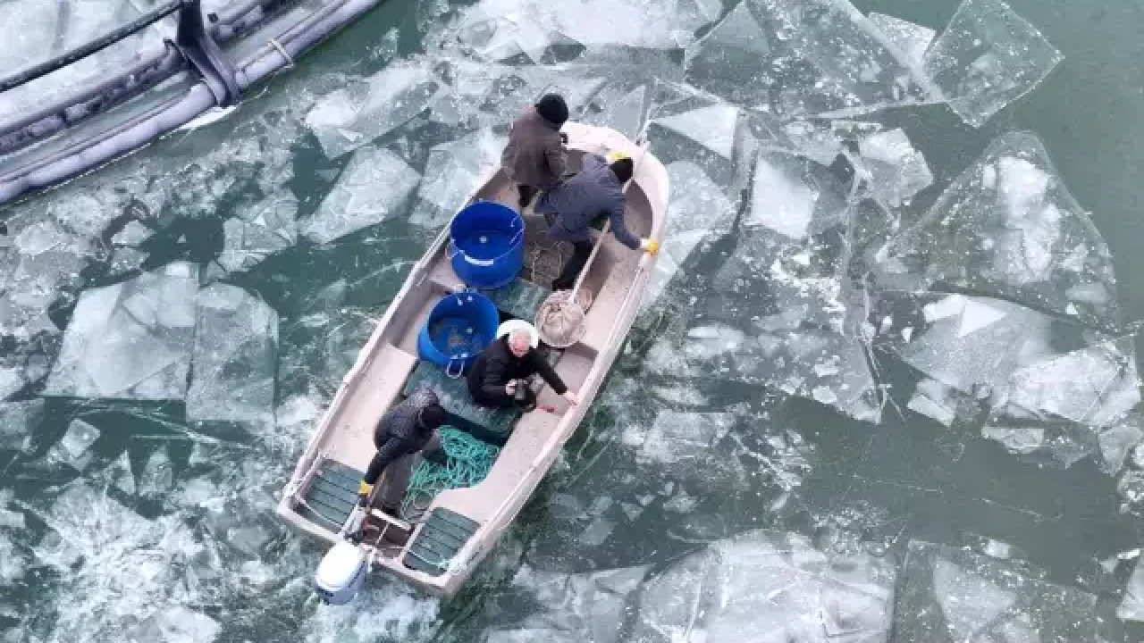 Geceleri eksi 25 ila 30 dereceyi bulan soğuk hava nedeniyle hayat şartları güçleşirken, barajda balıkçılık yapan vatandaşlar buzları kırarak kafeslere ulaşmaya çalışıyorlar. Bu durum, balıkçıları zorlu bir mücadele içine sokuyor.