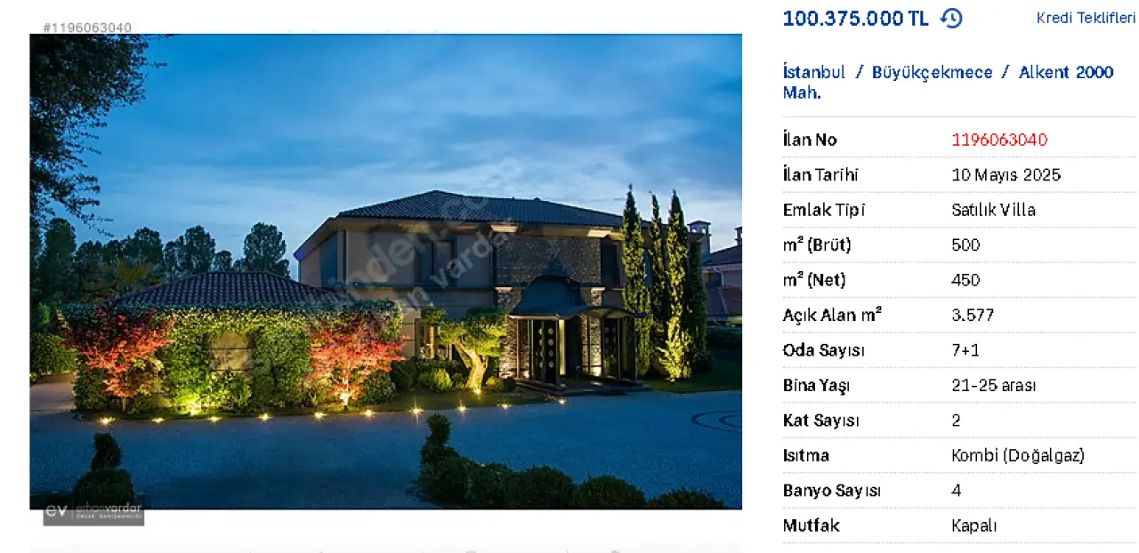 Beren Saat'in başrolünde yer aldığı Netflix'in popüler Türk dizisi "Atiye"nin çekildiği lüks villa da emlak piyasasında yerini aldı. İstanbul Büyükçekmece'deki Alkent 2000 Çamlıca Sitesi'nde bulunan "büyütülmüş manolya" olarak tanımlanan bu özel villa için istenen rakam ise 100 milyon 375 bin TL.
