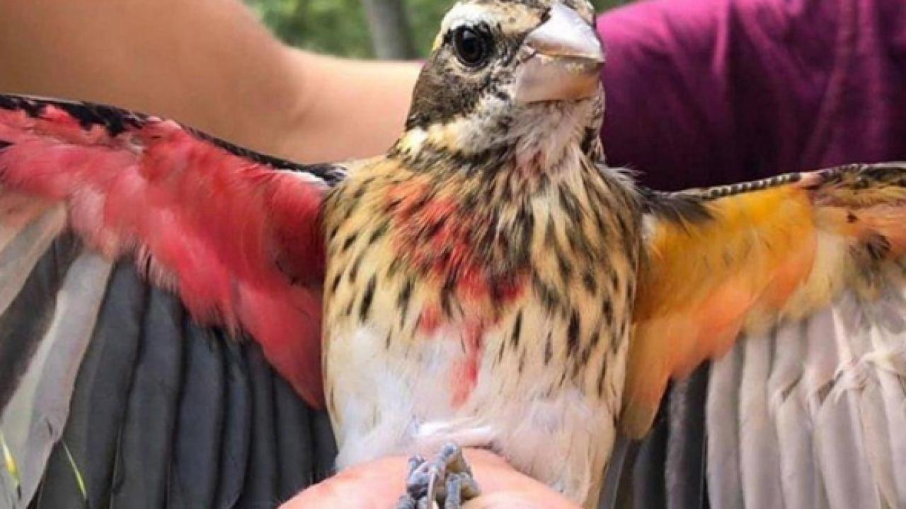 Gövdesinin bir yanında sarı, diğer yarısında pembe renkte tüyler olan ötücü kuşun cinsel fonksiyonları da bölünmüş durumda.