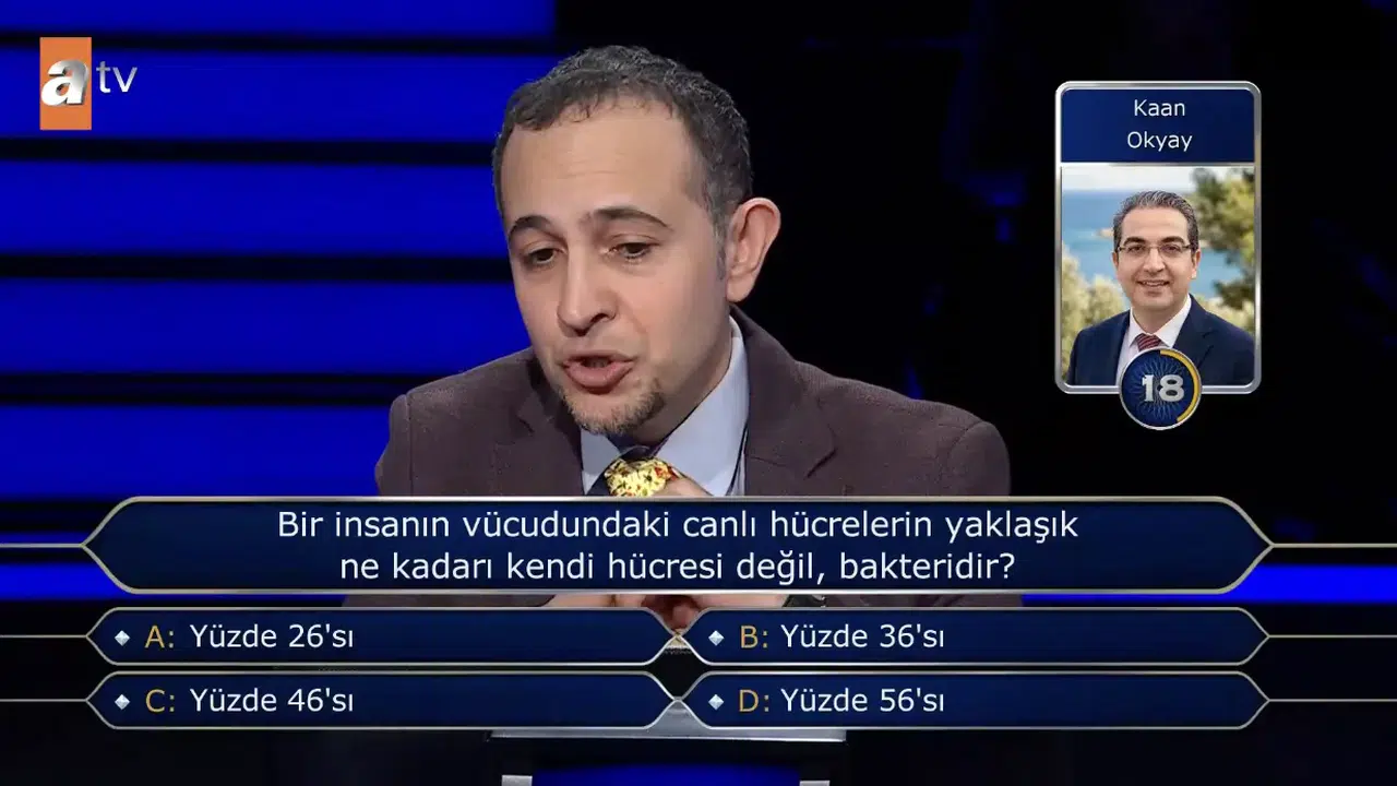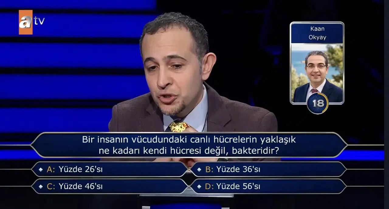 Bir insanın vücudundaki canlı hücrelerin yaklaşık ne kadarı kendi hücresi değil, bakteridir?