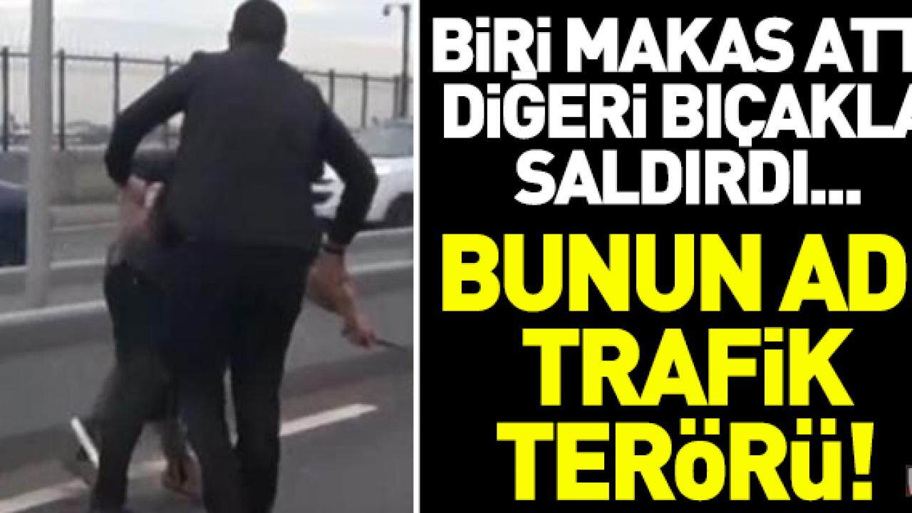 Kask kamerasına yansıyan görüntülerde, lüks otomobil yolda makas atarak ilerliyor. Ardından yoldaki hafif ticari araç ve lüks otomobil bir anda hızlanarak gözden kayboluyor. Trafik ışıklarında lüks otomobilin önünü kestiği görülen sürücü, bıçakla saldırıyor. Otomobildekiler de tekme ve yumruk atarak karşılık veriyor. Vatandaşların araya girmesiyle kavga son buluyor. Darp edilen hafif ticari aracın sürücüsü aracına binerek uzaklaşıyor.