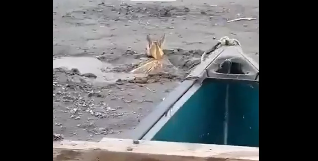 Bataklığın içine saplanan ve ölümü bekleyen yavru geyik, oradan kanosu ile geçen bir adam tarafından kurtarıldı.