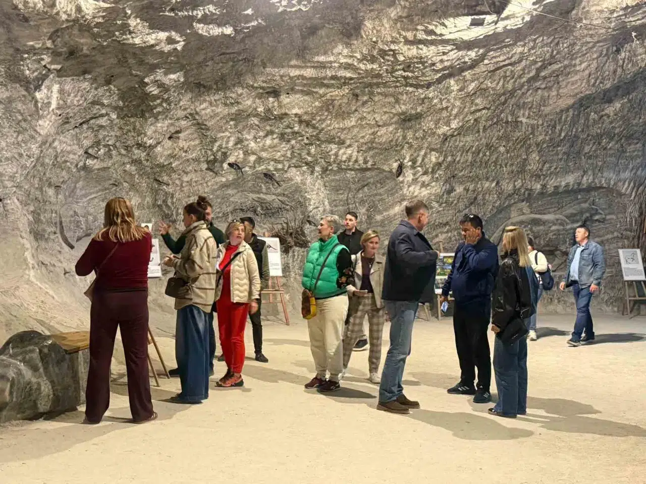 Gezinin ilk durağı, bölgenin en önemli turistik noktalarından biri olan ve yerin yaklaşık 150 metre altında bulunan tuz mağarası oldu. Doğal yapısı ve şifa kaynağı olmasıyla bilinen mağaranın büyüleyici atmosferini deneyimleyen ziyaretçiler, yeraltı dünyasının sunduğu bu eşsiz imkanı yakından inceleme şansı buldu.