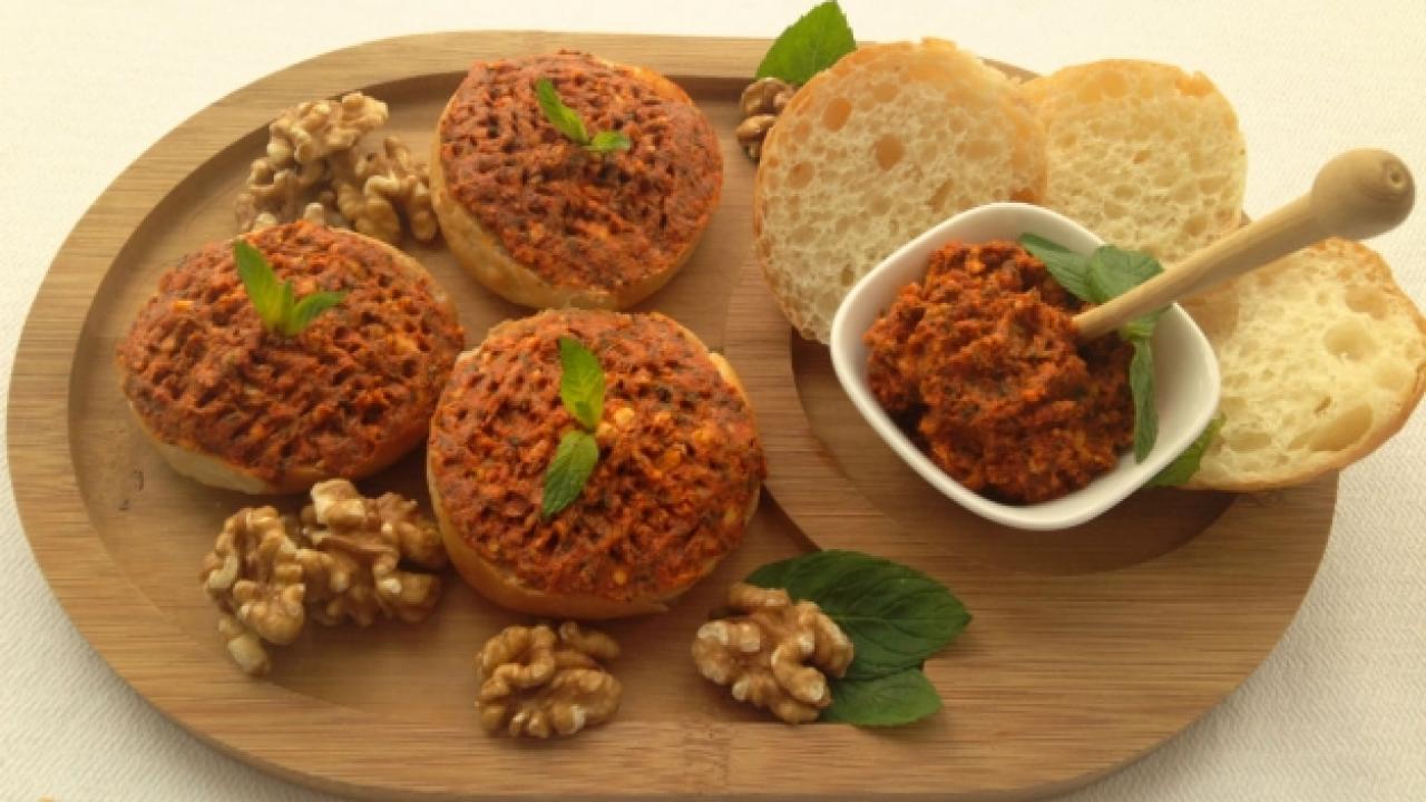 Sarımsağı ezin. Tuz hariç tüm malzemeleri bir araya getirip iyice karıştırın. Tadına baktıktan sonra tuzunu ilave edin. Tabağın üzerini yarım cevizlerle ya da maydanoz yapraklarıyla süsleyebilirsiniz.