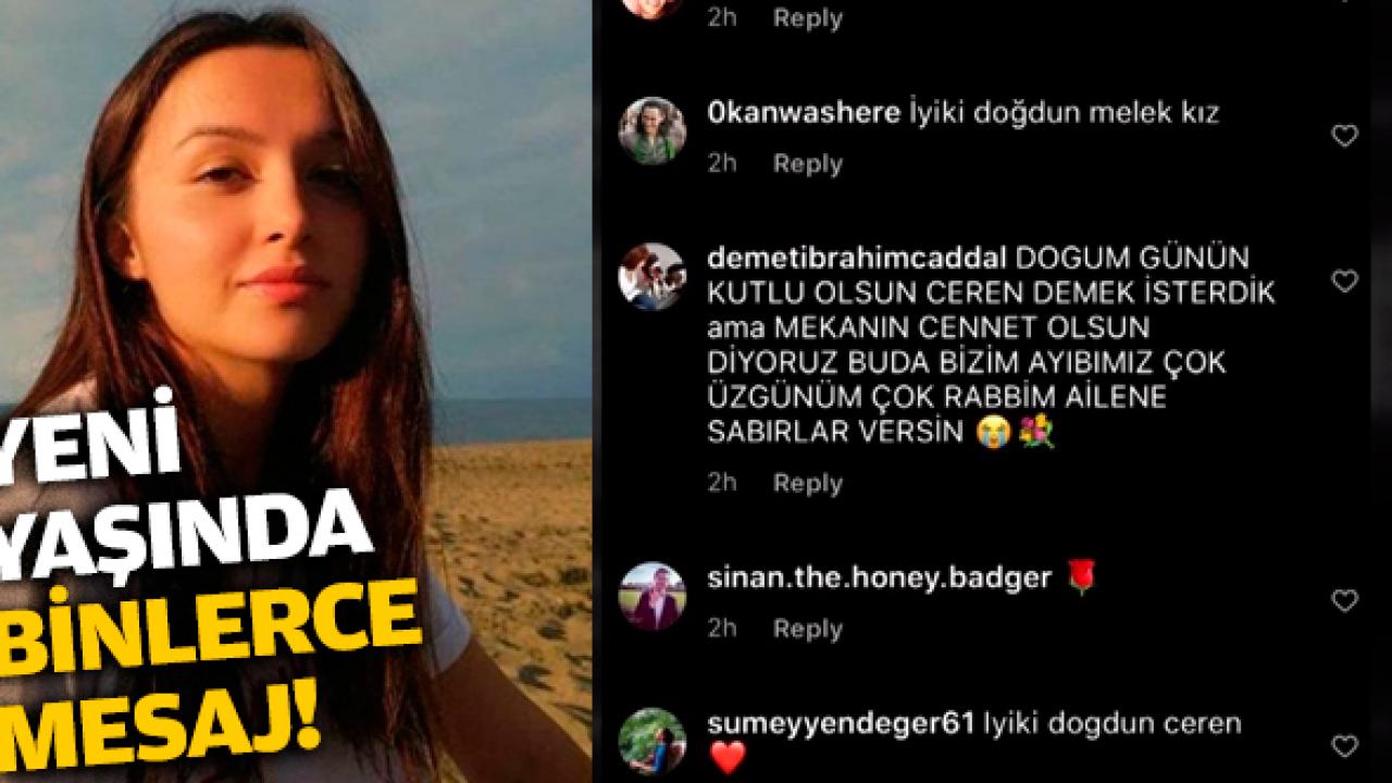 Ceren Özdemir, yaşasaydı bugün 21'inci yaşını kutlayacaktı. Ölümü ile Türkiye'yi yasa boğan Ceren'den geriye arkadaşlarına bıraktığı 'Hediye almayın, ama doğum günümü unutmayın' mesajları kaldı. Sosyal medya hesaplarına binlerce takipçi, mesajlar atararak Ceren'in doğum gününü kutladı. Mesajlarda, 'Seni koruyamadık, bizi affet, doğum günün kutlu olsun', 'İyi ki doğdun melek yüzlü melek', 'İyiki doğdun prenses' gibi ifadelere yer verildi.