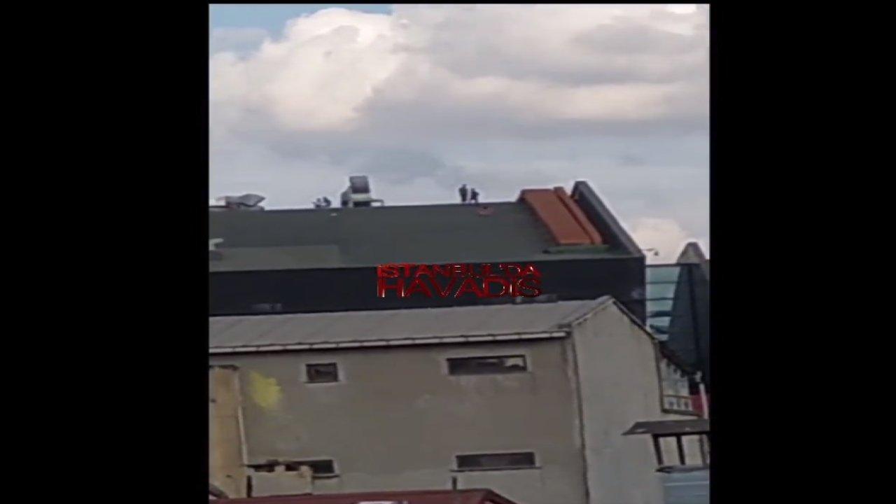 İstanbul İkitelli'de çok katlı bir binanın çatısına çıkan 4 çocuk tehlikeli halde oyun oynuyor.