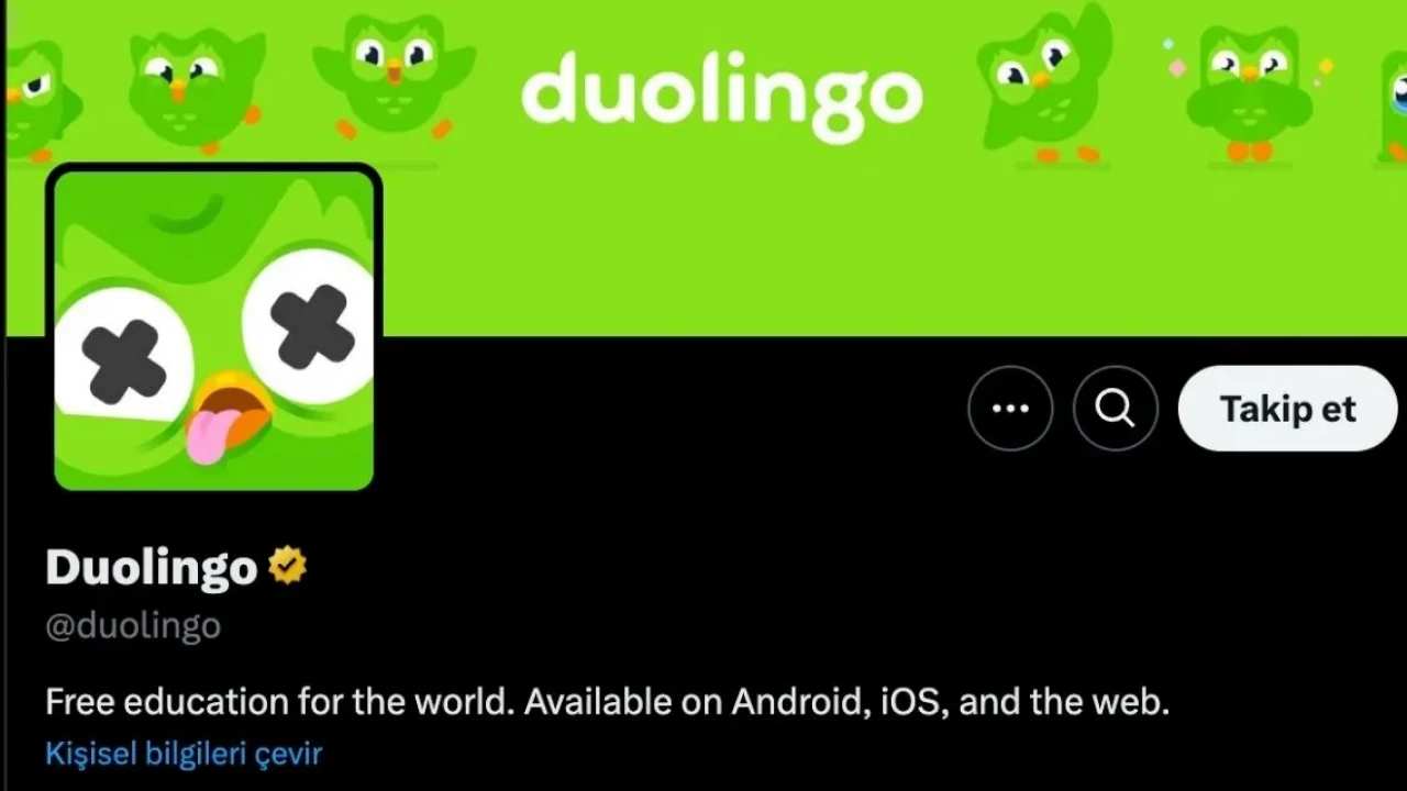 Duolingo’nun resmi hesabından yapılan paylaşımda, baykuş Duo’nun hayatını kaybettiği duyuruldu. Şirket, profil fotoğrafını gözleri çarpı işaretiyle kapatılmış ve dili dışarı sarkmış bir baykuş görseliyle değiştirdi.