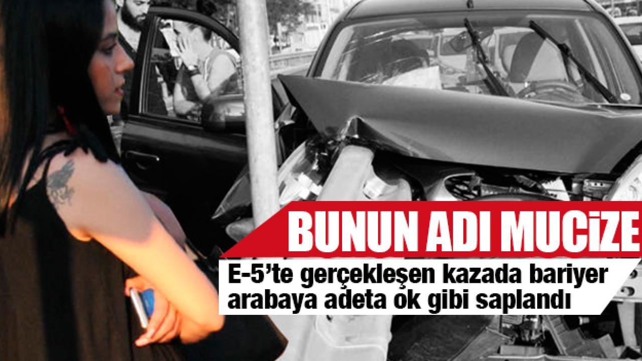 İçinde 3 kişinin bulunduğu otomobil bariyere çarptı. Bariyer ok gibi otomobile girerken araçtakiler kazayı şans eseri yara almadan atlattı.