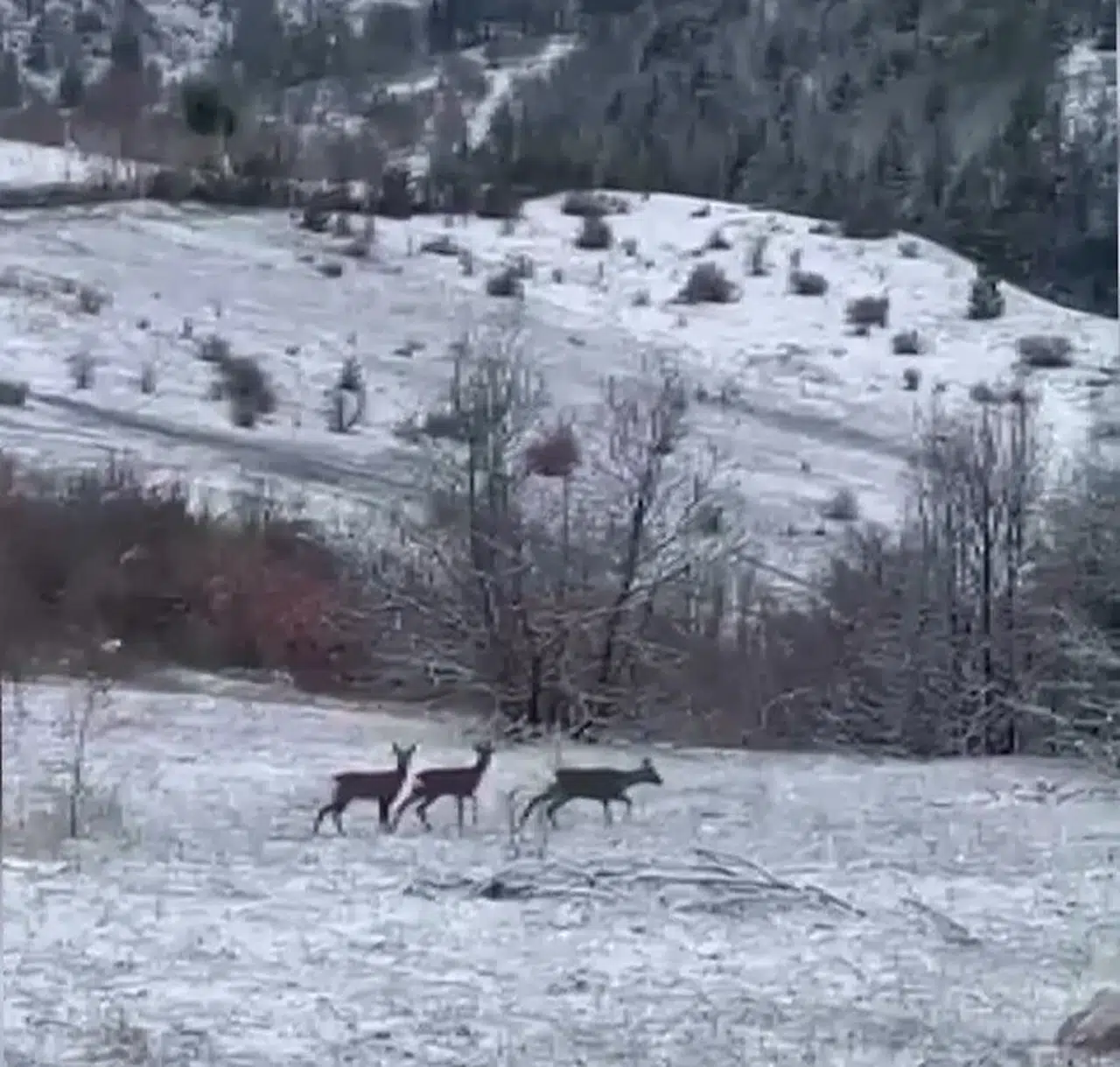 Doğanın kalbinde eşine az rastlanır bir ana tanıklık edildi; kar yağışı altında özgürce dolaşan kızıl geyikler, bölgenin yaban hayatı zenginliğini gözler önüne serdi.
