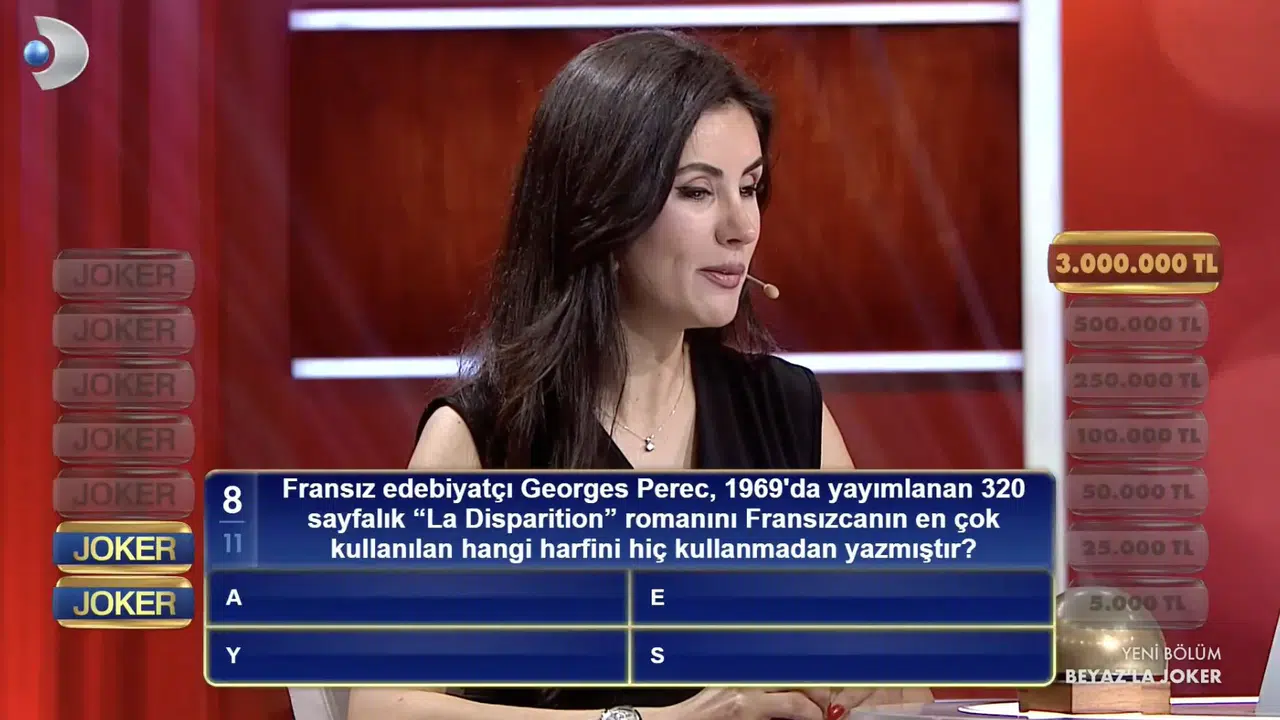 Fransız edebiyatçı Georges Perec, 1969’da yayımlanan 320 sayfalık La Disparition romanını Fransızca’nın en çok kullanılan hangi harfini hiç kullanmadan yazmıştır?