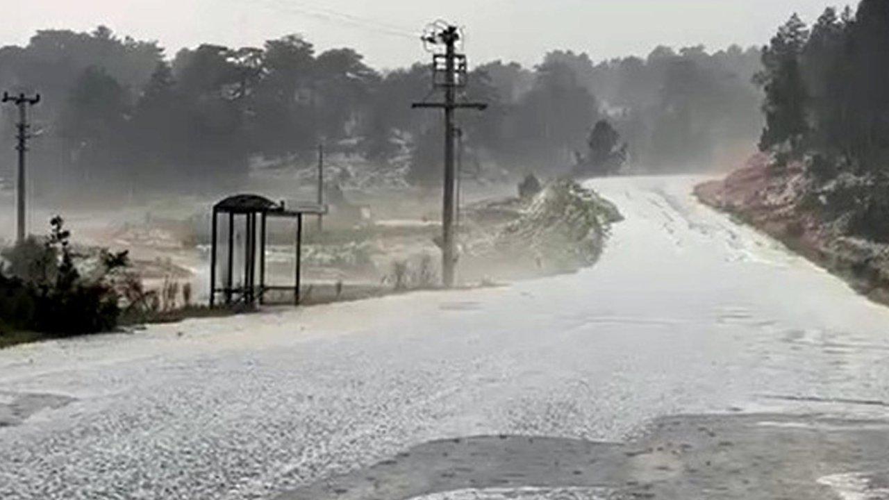 Menteşe'de sabah saatlerinde başlayan ve aralıklarla devam eden sağanak yağış, yerini doluya bıraktı. Yaklaşık 5 dakika süren dolu nedeniyle Menteşe-Göktepe yolu beyaza büründü. Bölgede bulunan 2 ahşap çardağın dolu nedeniyle zarar gördüğü belirtildi. Öte yandan, vatandaşlar, dolu yağışını cep telefonlarının kameralarıyla kaydetti. (DHA)